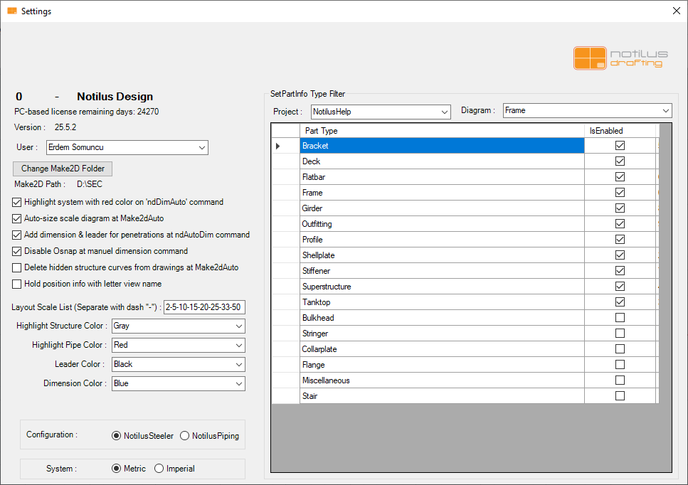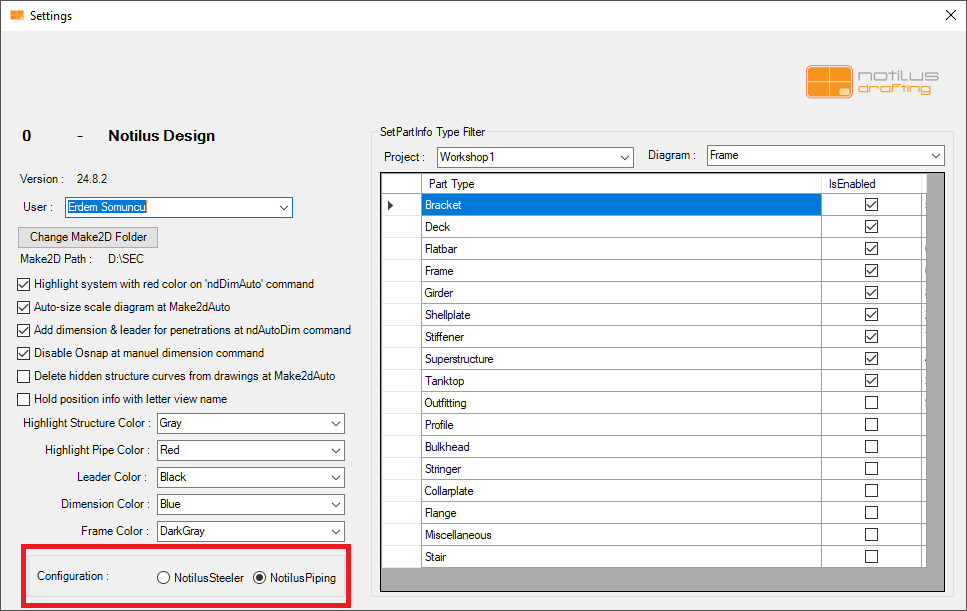 Change configuration to Notilus Drafting from settings. ndSettings.